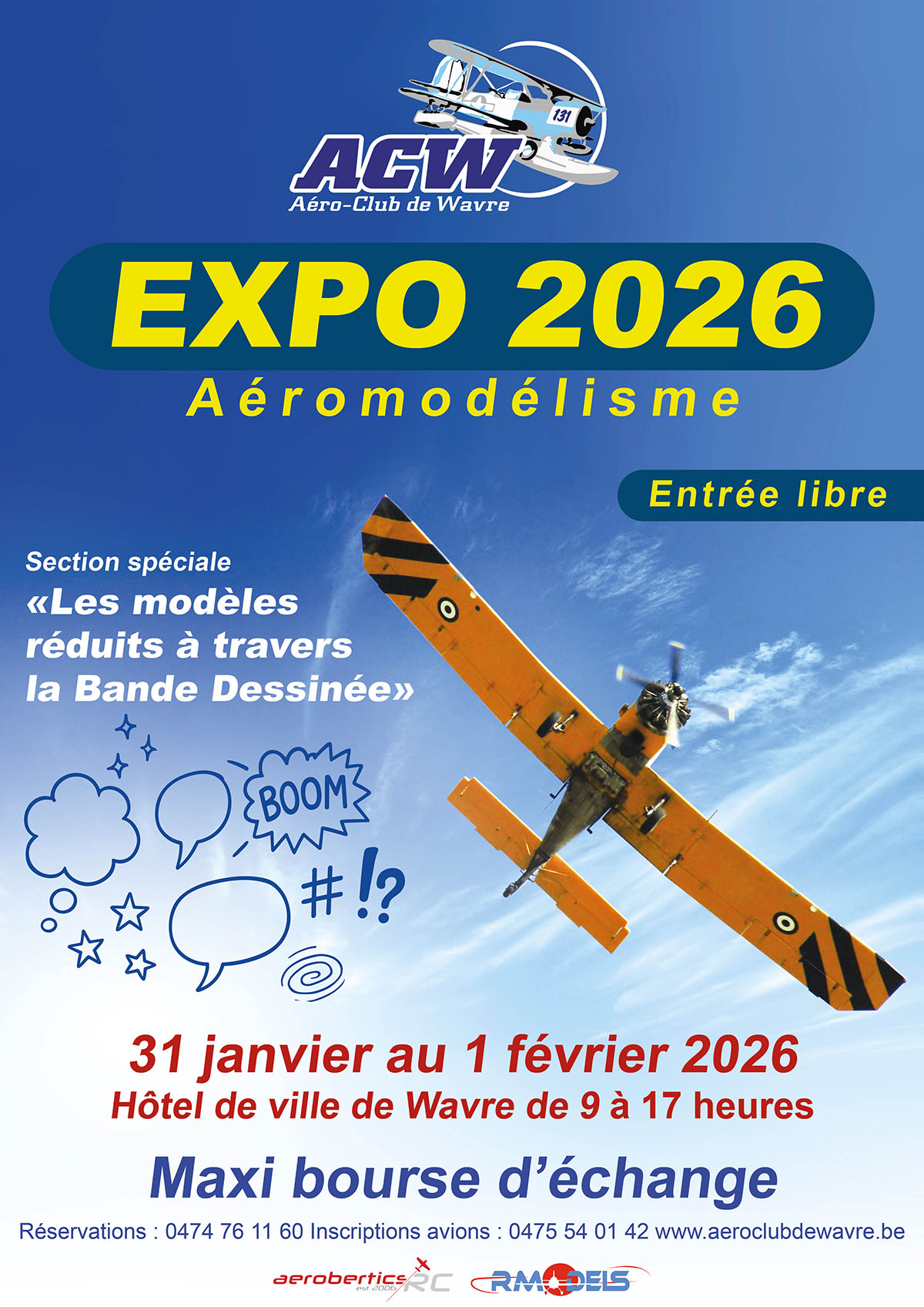 L’Aéro-club de Wavre vous invite à sa traditionnelle Exposition publique annuelle, qui se tiendra le week-end du 31 janvier et 1er février 2026, au rez-de-chaussée de l’Hôtel de Ville de Wavre.
